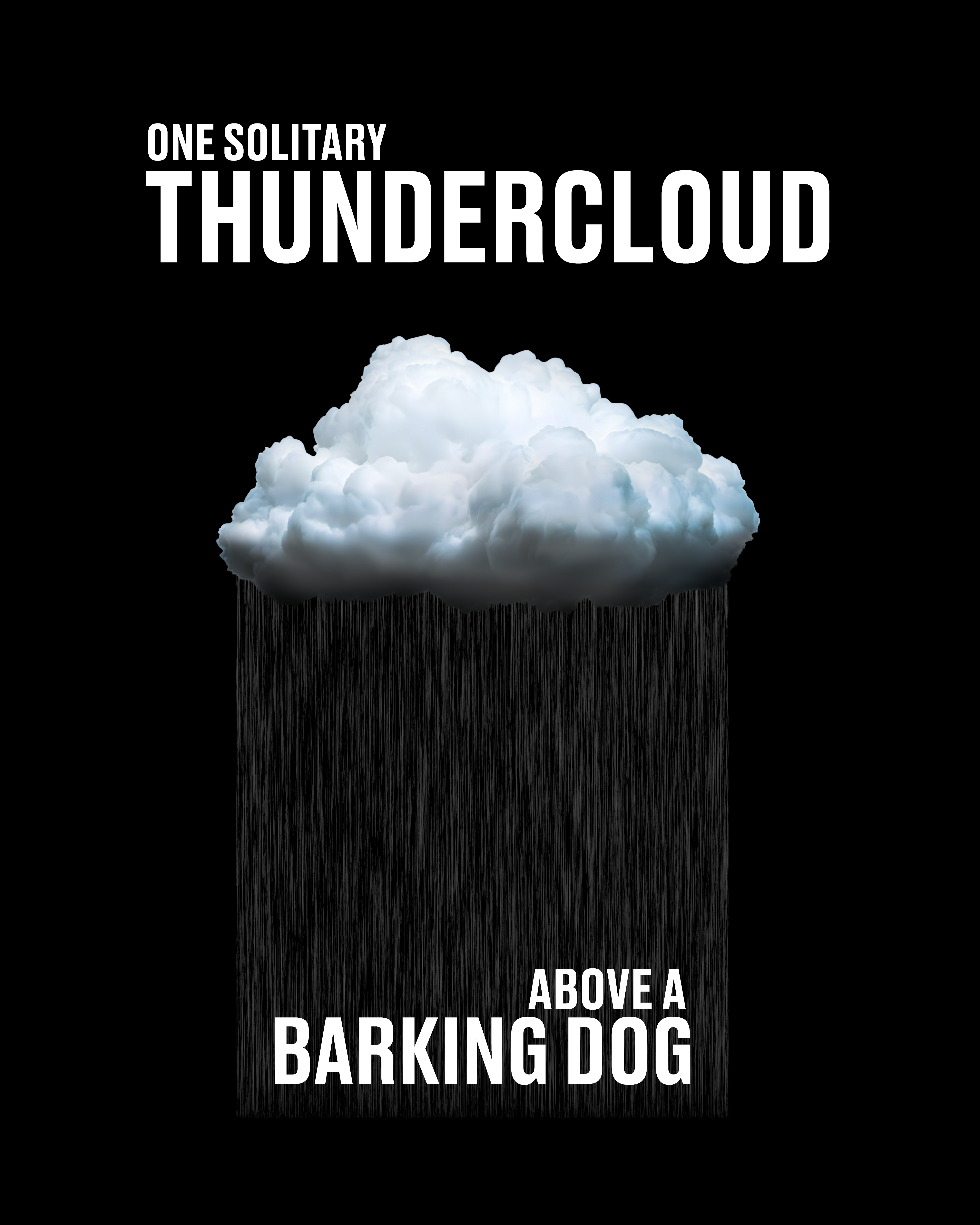 ONE SOLITARY THUNDERCLOUD ABOVE A BARKING DOG